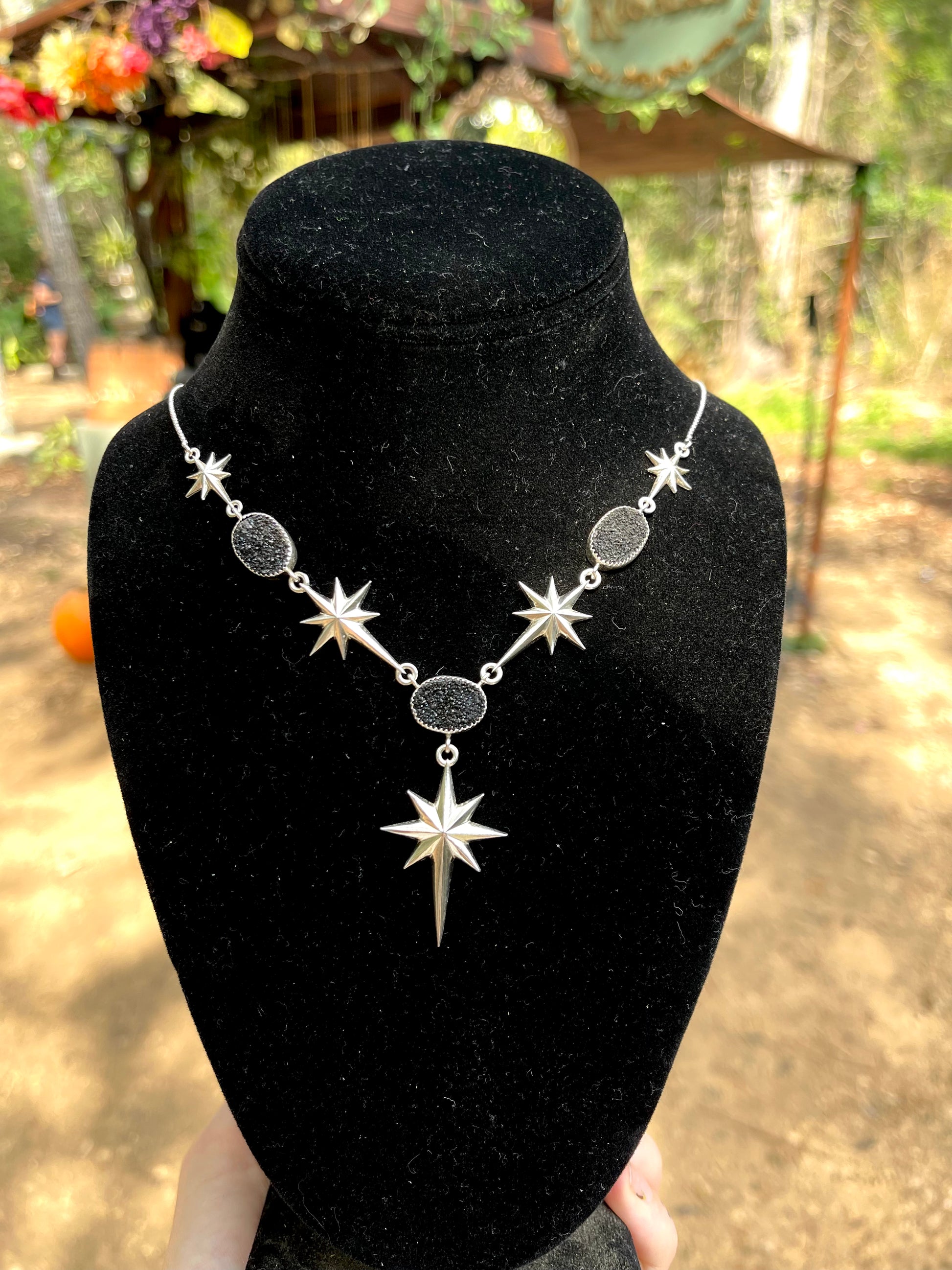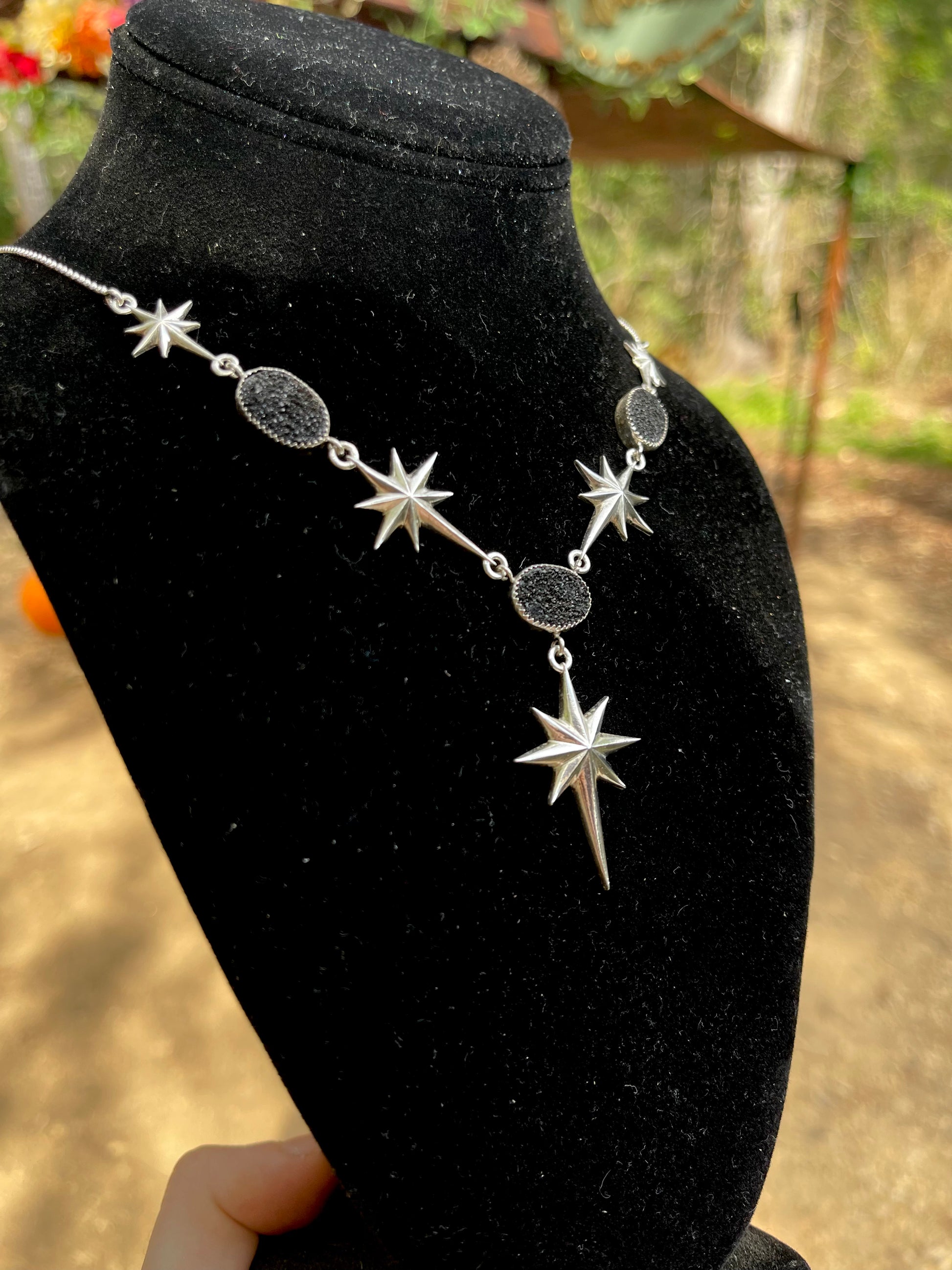 With sterling silver stars glistening alongside deep blue agate druzy stones, it’s like wearing a piece of midnight magic, perfect for those who find wonder in the stars.