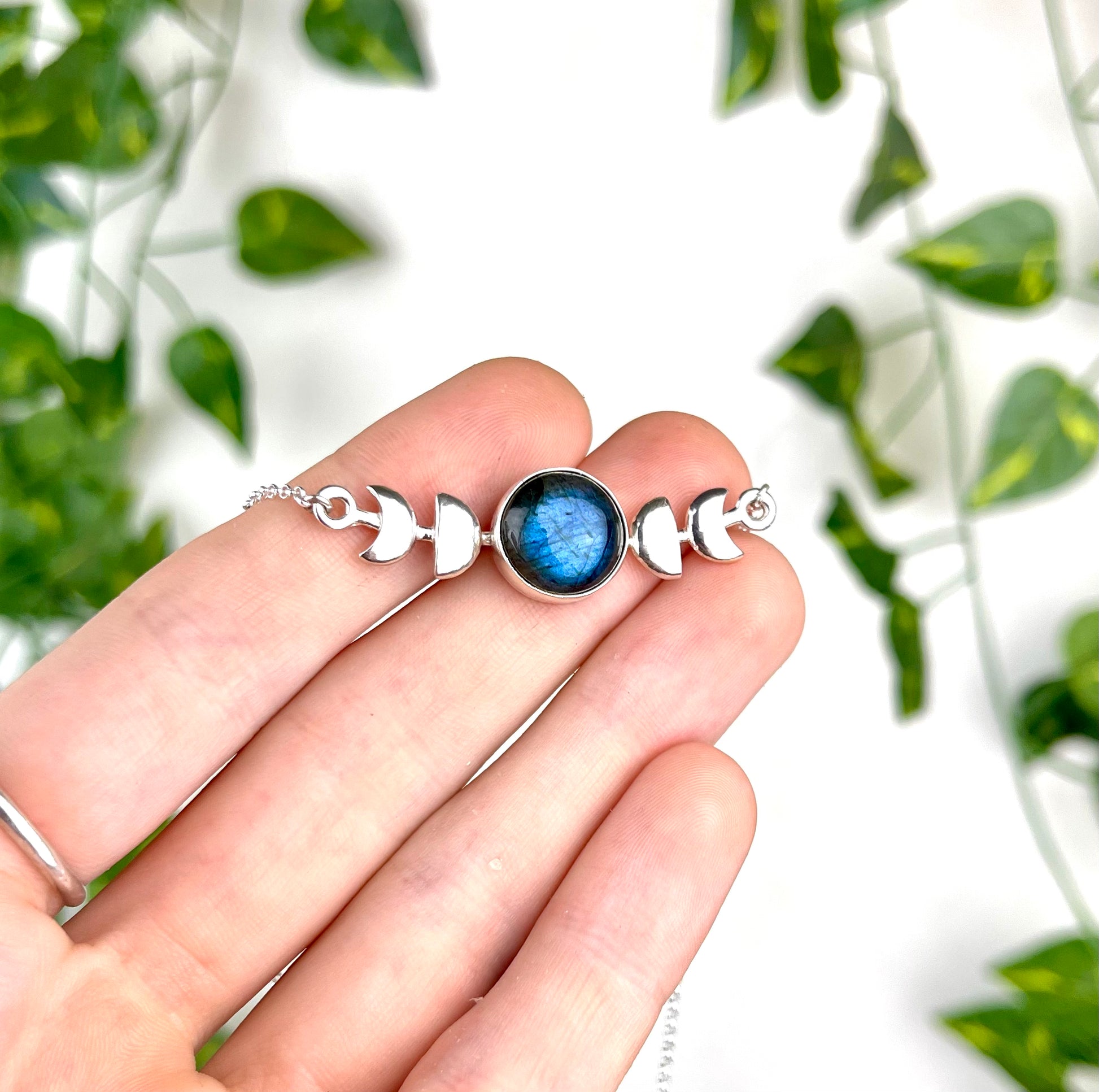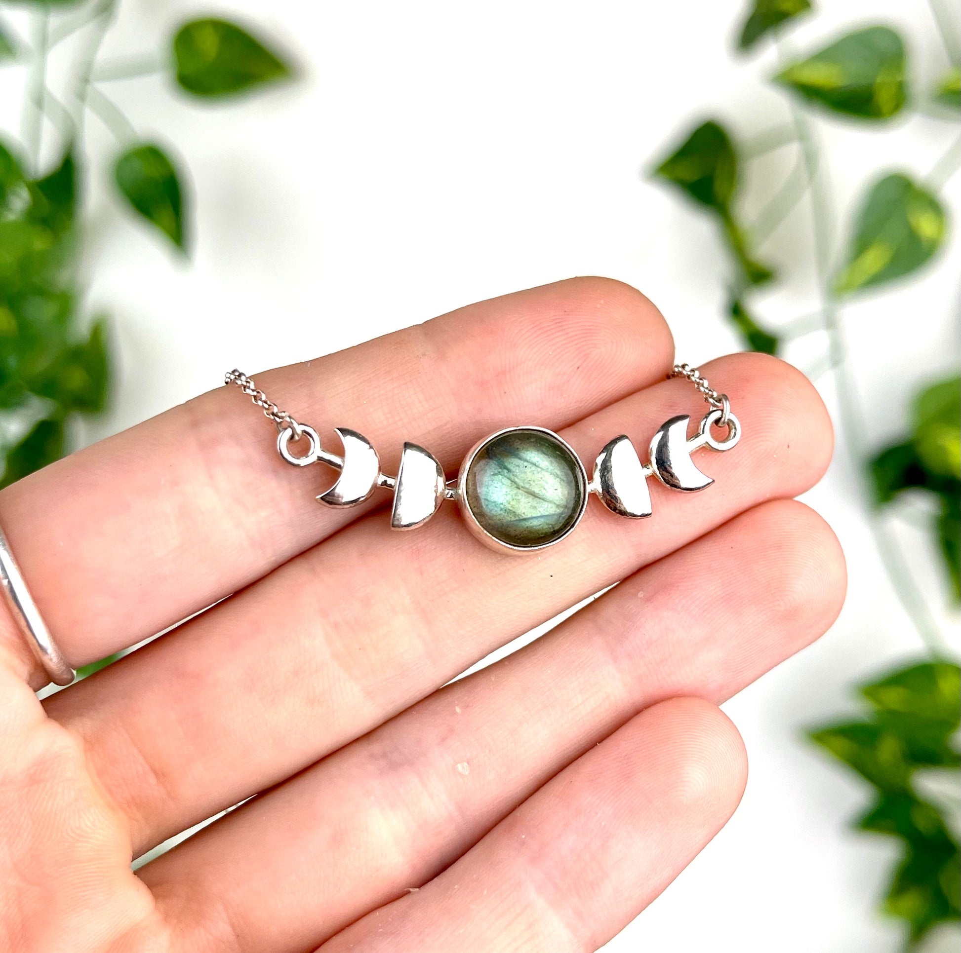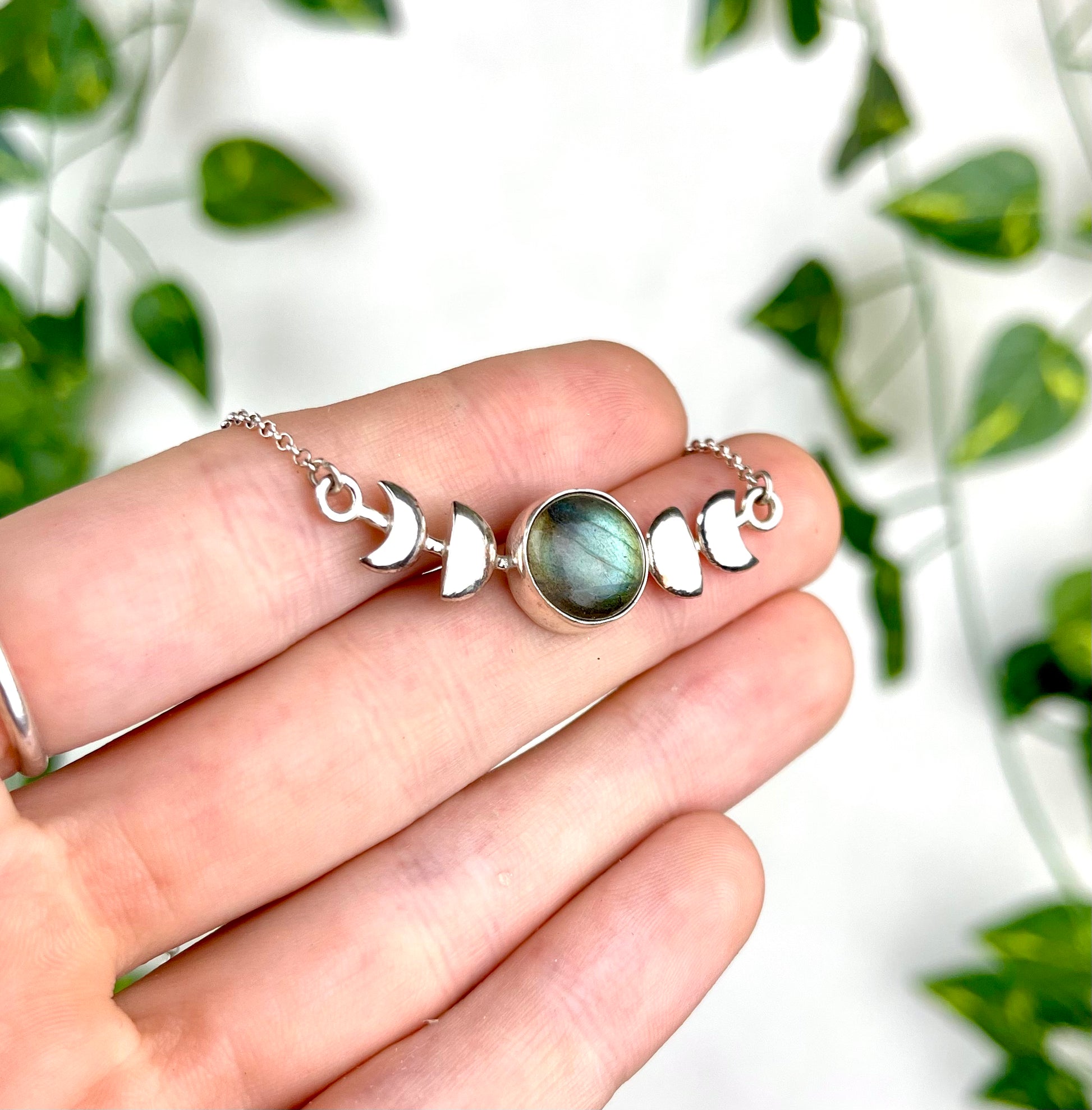 Embrace the magic of the cosmos with our Moon Phases Necklace featuring a stunning labradorite centerpiece. This enchanting piece beautifully captures the lunar cycle, showcasing the moon's phases from new moon to full moon. The labradorite stone adds a mystical touch, reflecting vibrant colors with every movement. Perfect for any celestial lover, this necklace is a timeless accessory that brings the beauty of the night sky to your everyday style.