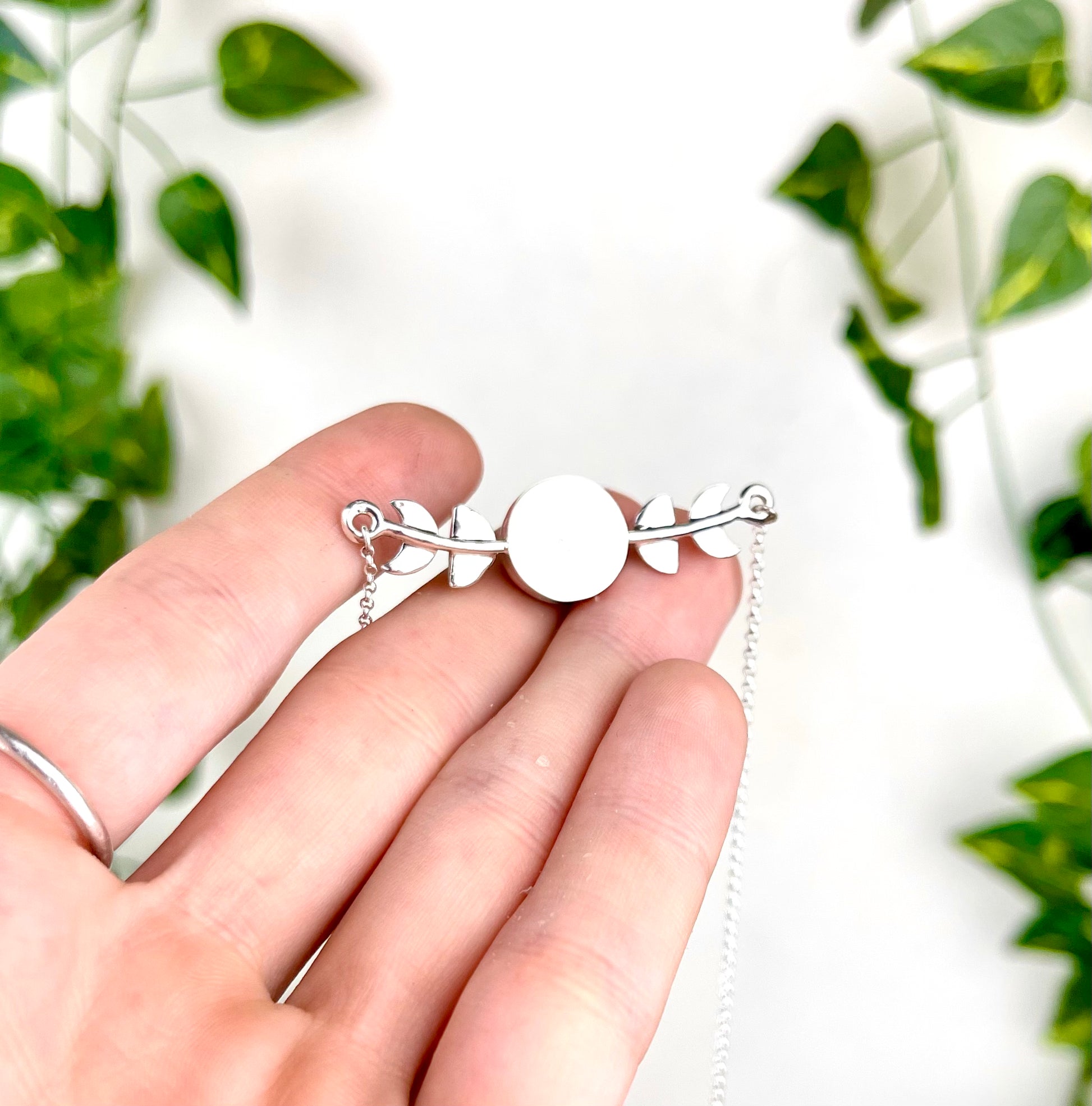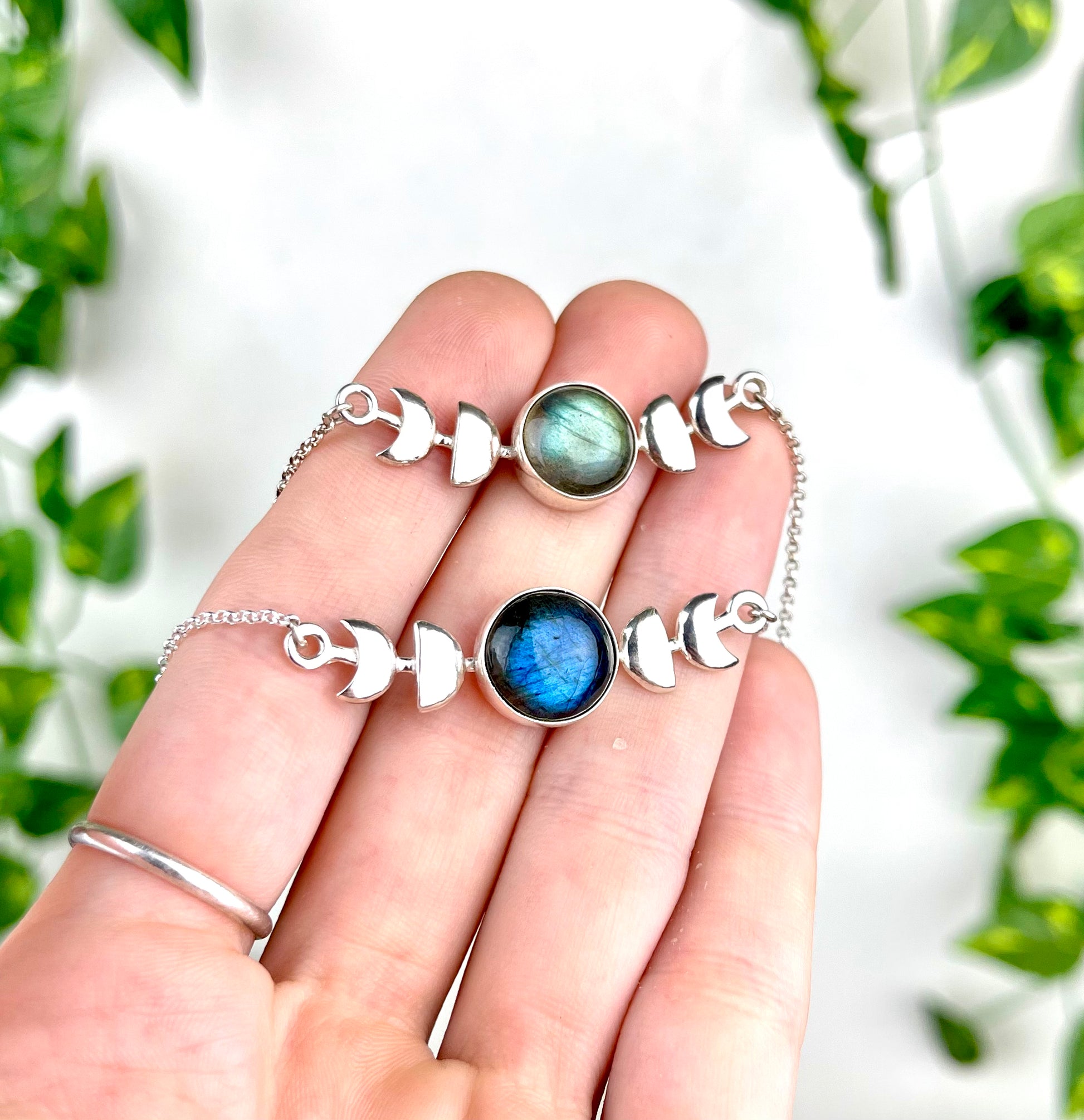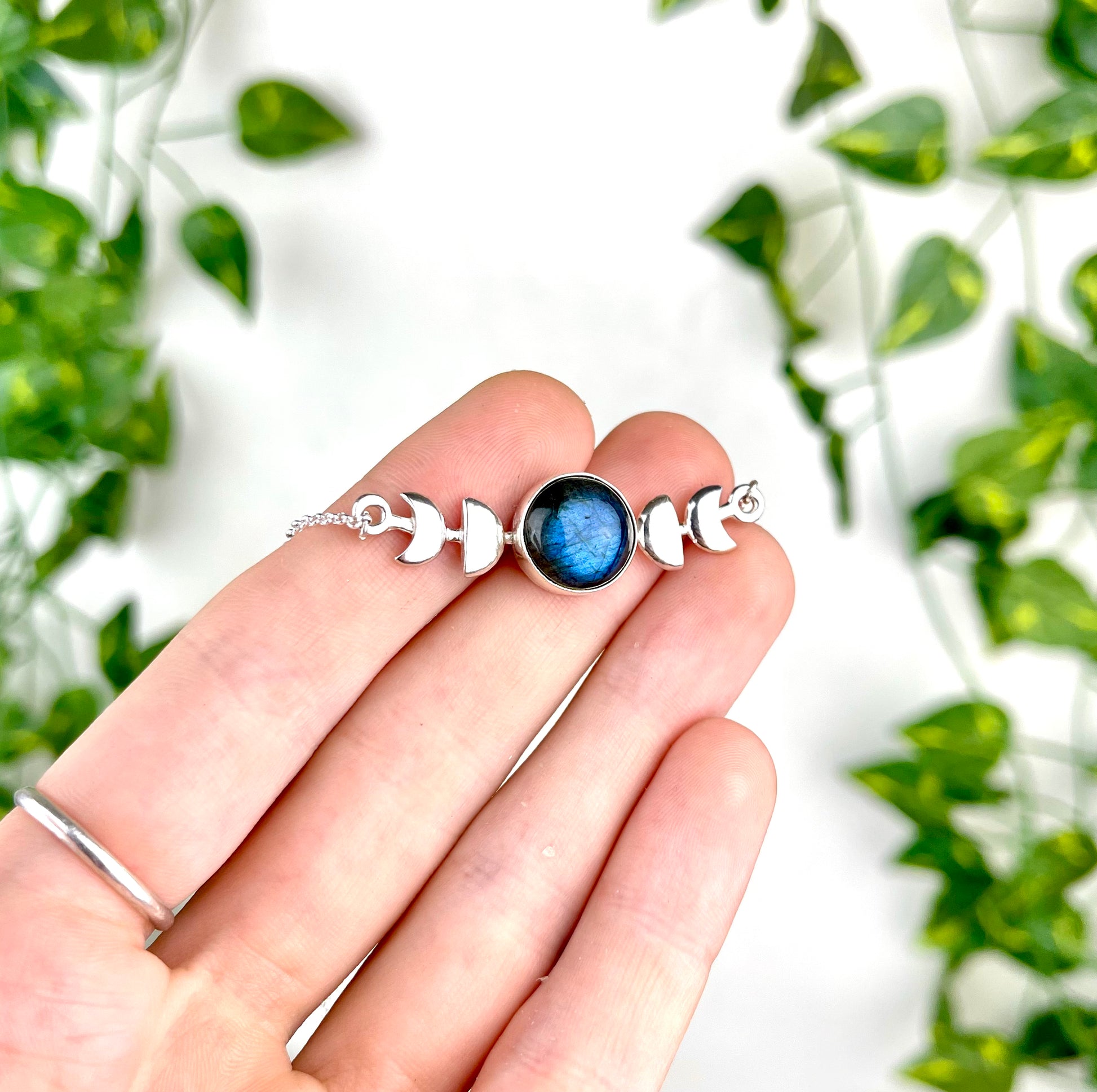 Embrace the magic of the cosmos with our Moon Phases Necklace featuring a stunning labradorite centerpiece. This enchanting piece beautifully captures the lunar cycle, showcasing the moon's phases from new moon to full moon. The labradorite stone adds a mystical touch, reflecting vibrant colors with every movement. Perfect for any celestial lover, this necklace is a timeless accessory that brings the beauty of the night sky to your everyday style.