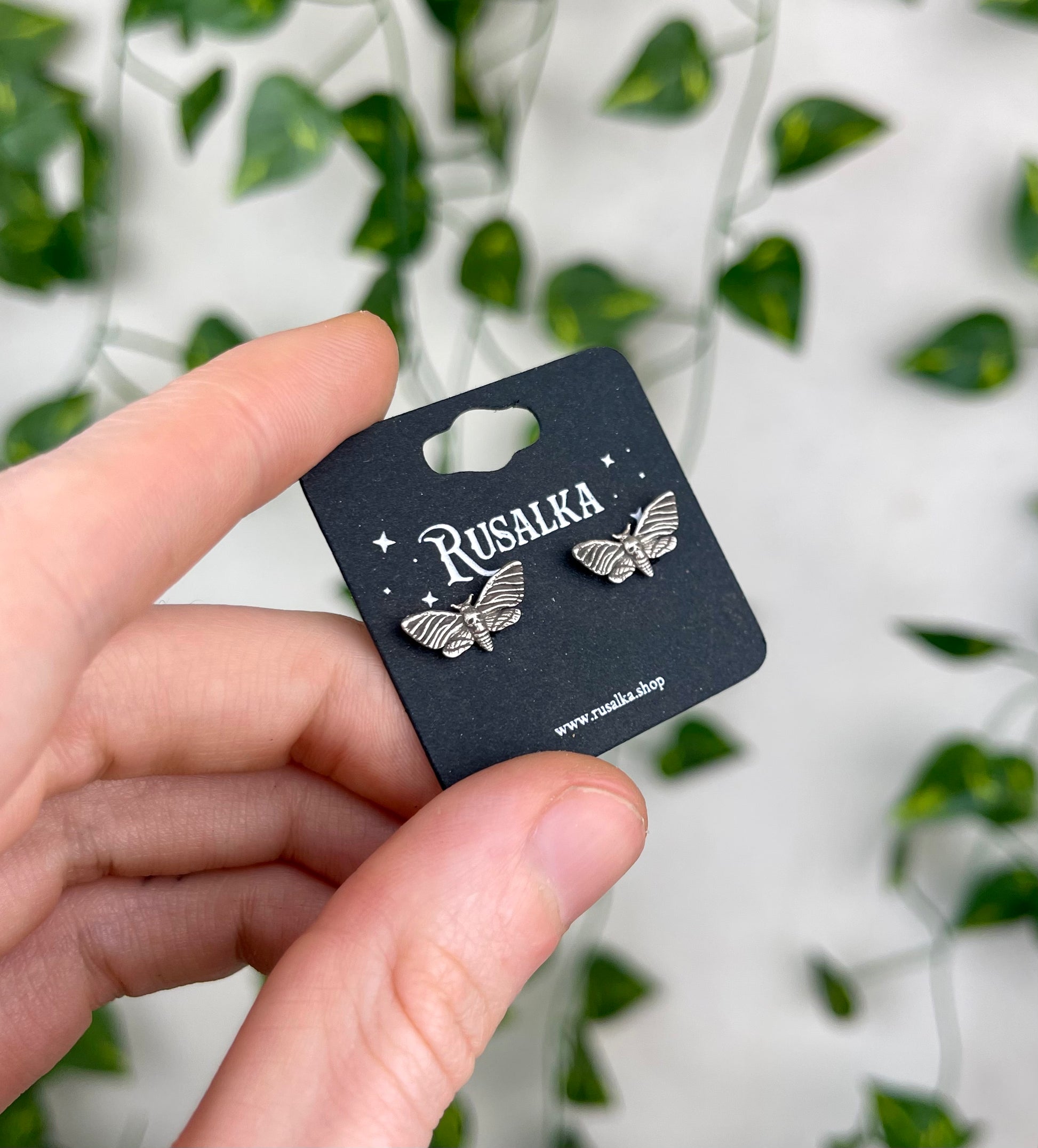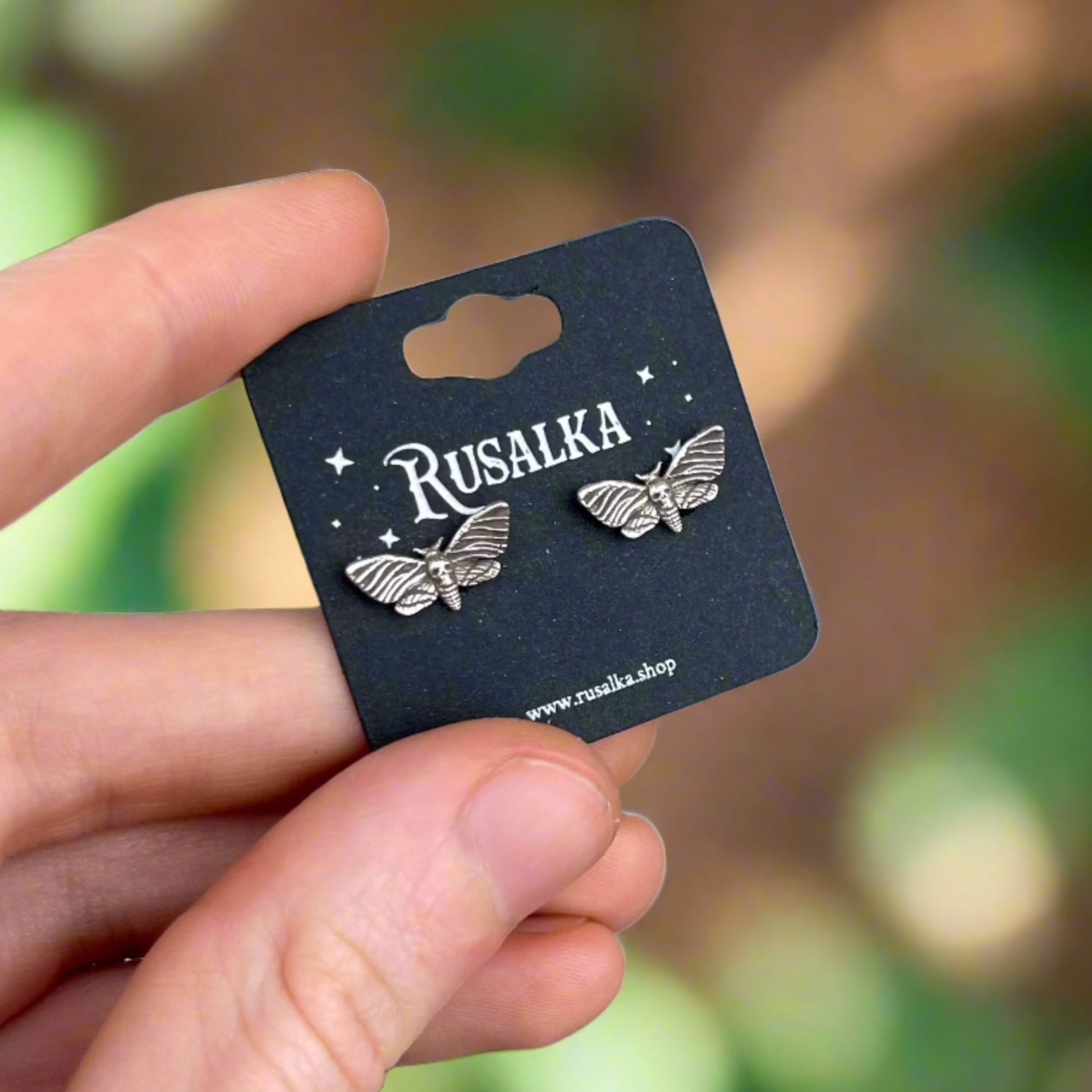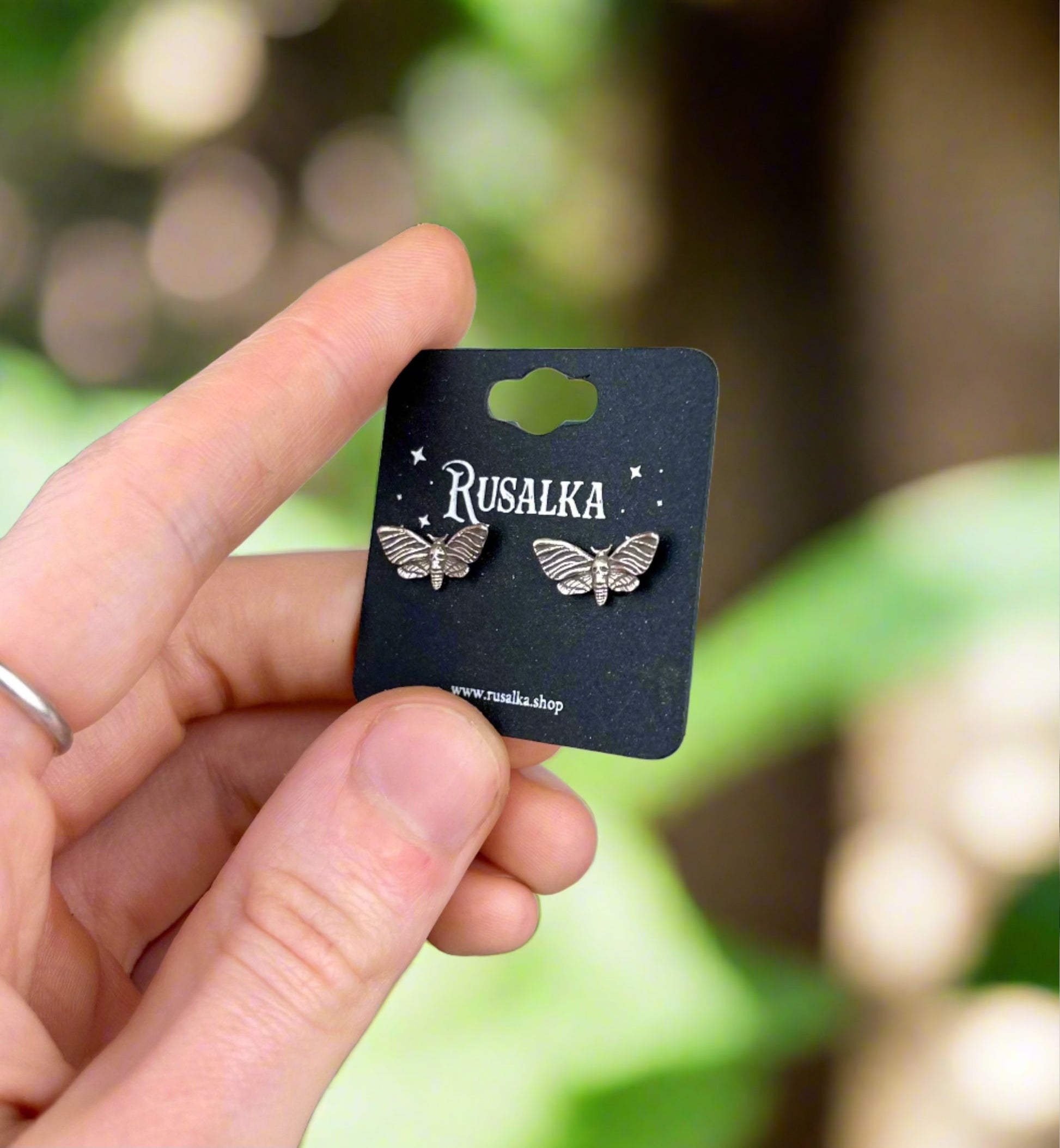 Embrace nature's beauty with these charming Death Moth Stud Earrings. Perfect for nature lovers and those seeking a unique, stylish accessory. These delightful earrings add a whimsical touch to any outfit.
