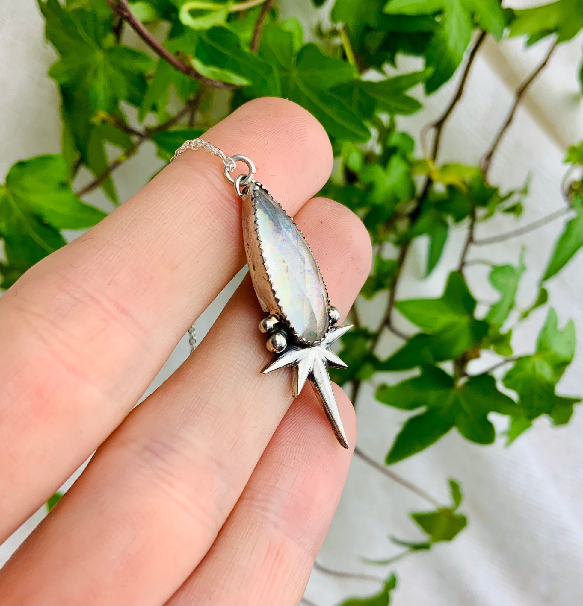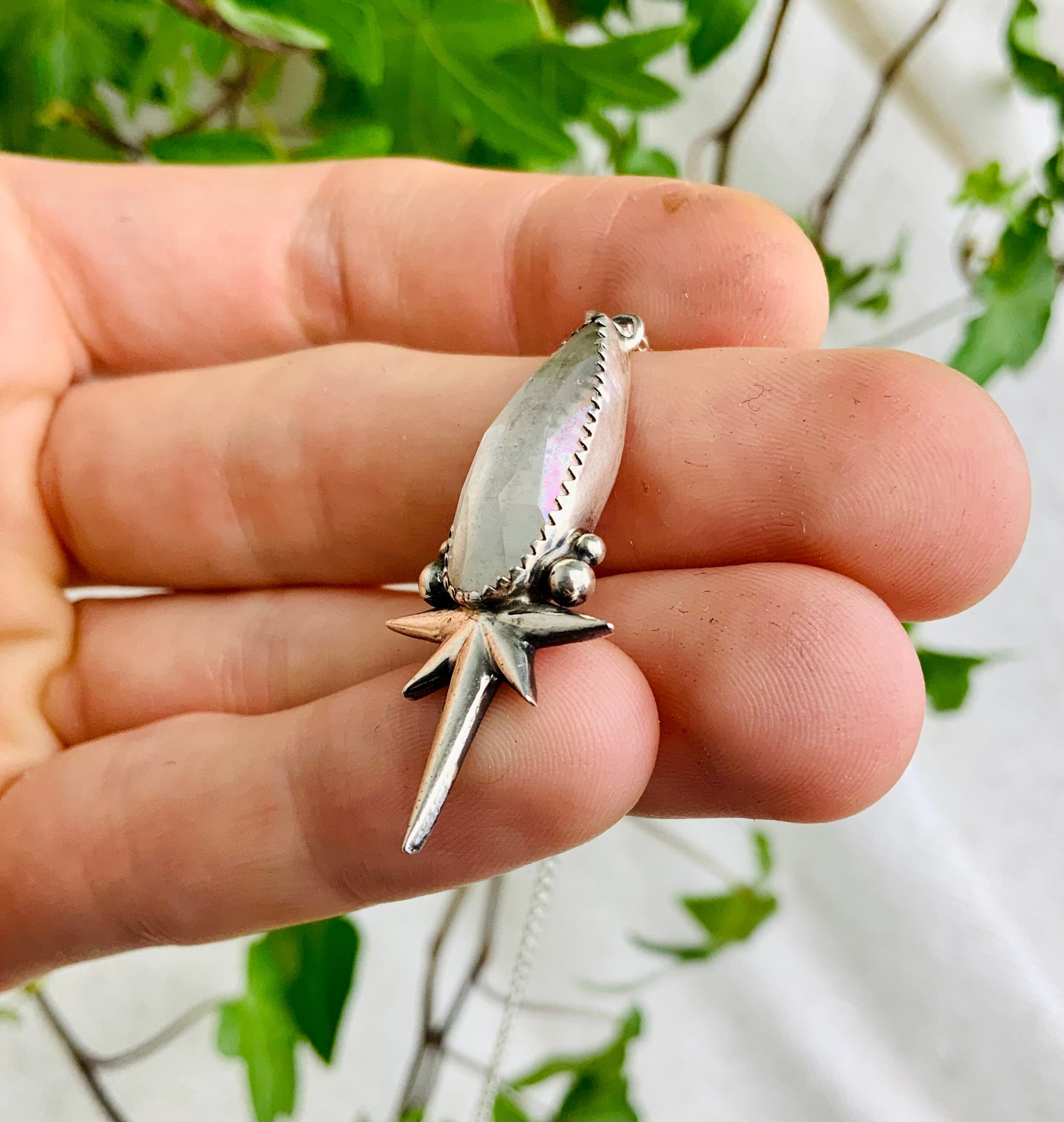 This Moon Star Necklace with a beautiful Angel Aura Quartz at its heart.