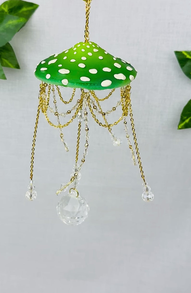 Illuminate your space with the vibrant Green Zinnia Mushroom Sun Catcher. This beautifully crafted piece features a striking green mushroom cap, capturing the pleasant and enchanting colors of a Green Zinnia Flower. Perfect for adding a touch of elegance and charm to any room or garden, it’s a delightful addition to your decor.