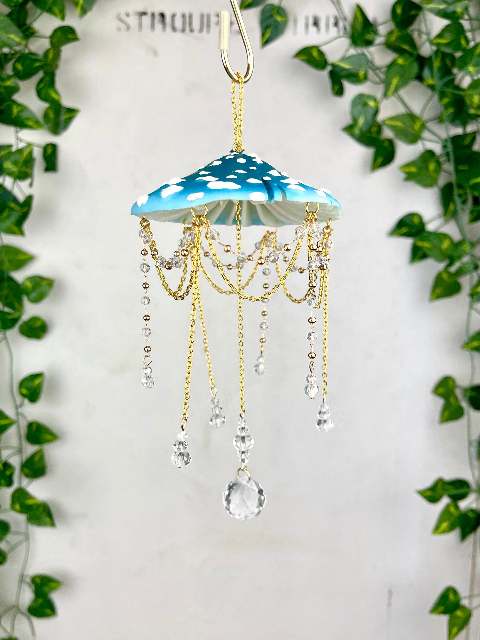 Introduce a touch of natural elegance to your space with the Menziesii Blue Mushroom Suncatcher. This beautifully crafted piece features a serene blue mushroom cap, inspired by the delicate hues of the Nemophila menziesii wildflower. Perfect for adding a calming and charming atmosphere to any room or garden, it’s a delightful addition to your decor.