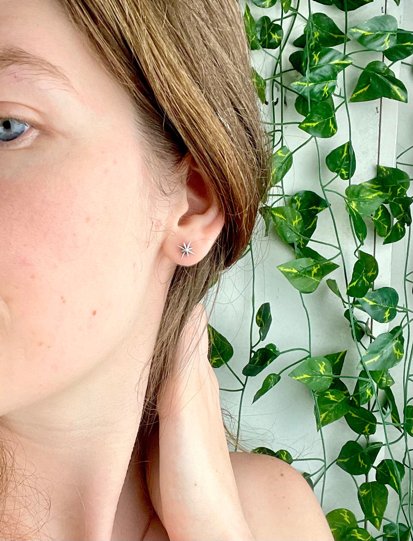 Shine bright with these Sterling Silver Star Stud Earrings. Featuring a whimsical celestial design, they add a touch of elegance to any outfit. Perfect as a unique gift.